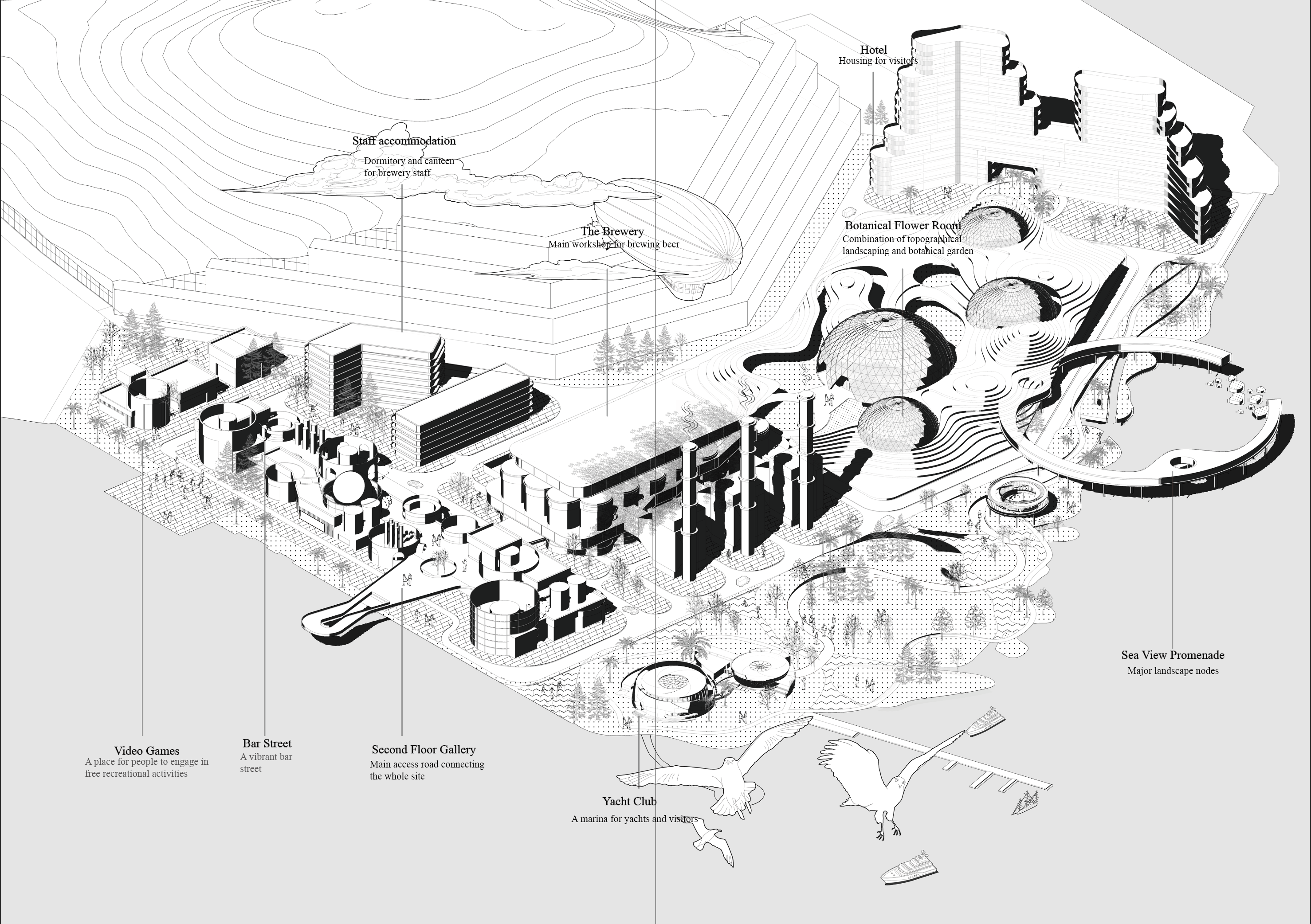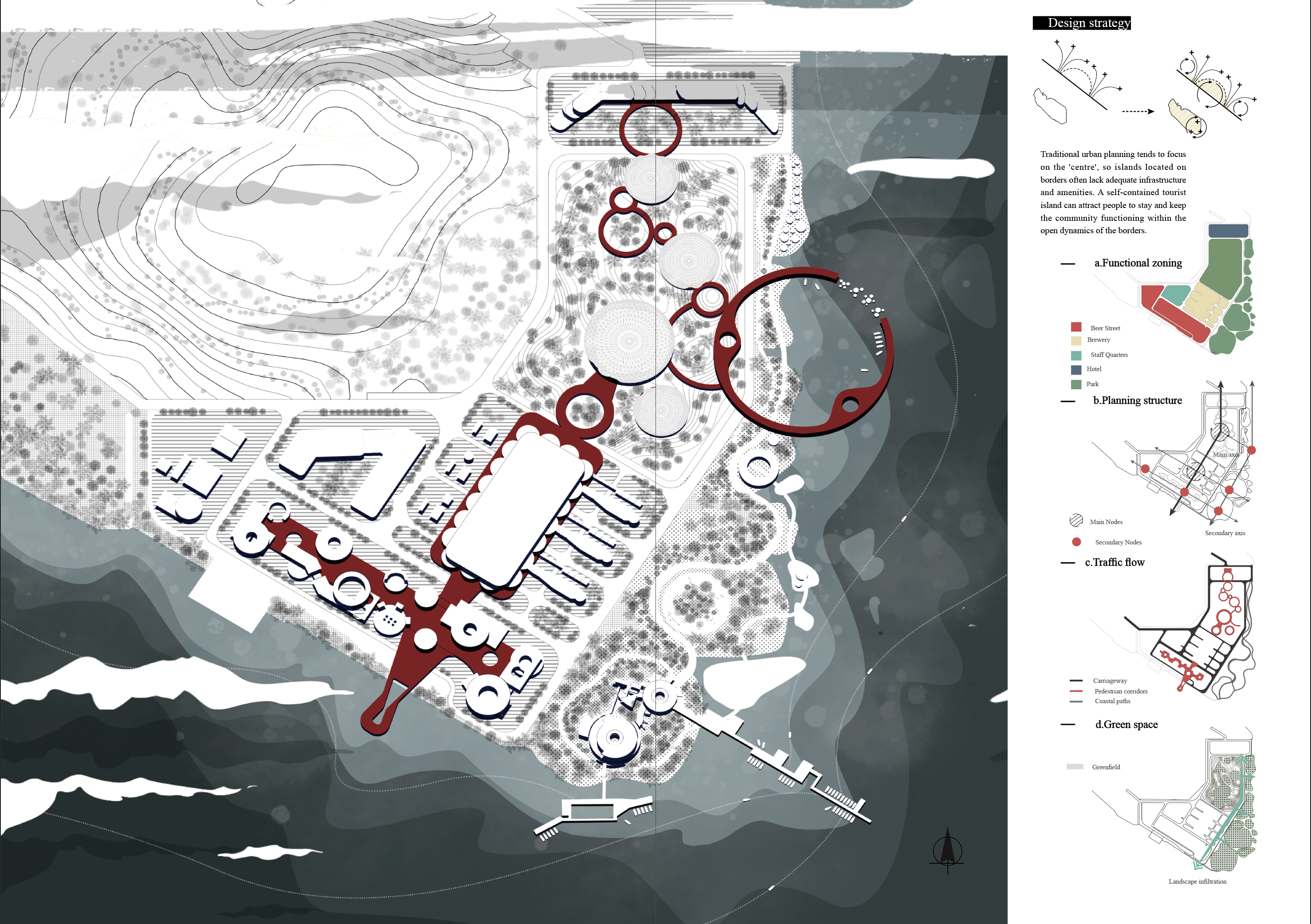 As a way to compensate for the ecological damage caused by previous industrial activities, the project also focuses on building an eco-friendly environment. By creating expansive green spaces, the design seeks to restore the ecological damage inflicted by heavy industry, transforming Dachan Island into a sustainable, vibrant community with renewed economic and environmental vitality.